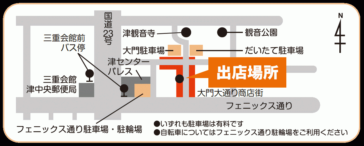 津駅からバス6分 三重交通「三重会館前」下車のち徒歩5分